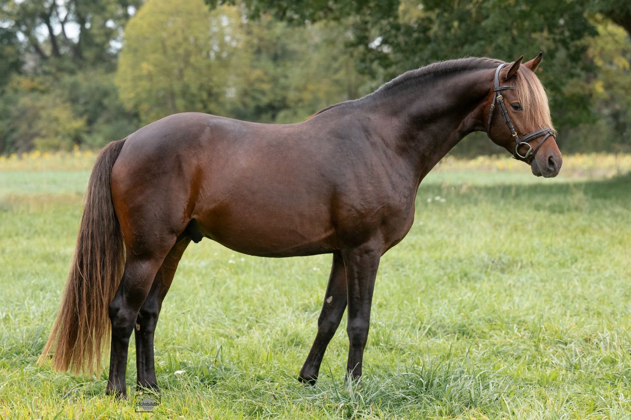 Silver Fizz presents himself with exceptional quality under the saddle. A sensitive and refined ladies’ horse, he impresses with his outstanding rideability, cooperative nature, and harmonious way of going. At the same time, his athletic ability and natural talent point clearly to a promising future in sport, making him both a delightful partner today and an exciting prospect for tomorrow.