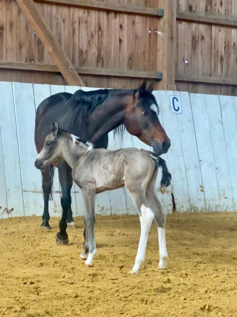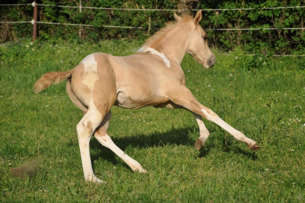 Dank seiner Farbgenetik (Ee Aa CRCR TT) bringt er garantiert farbintensive, bunte Nachzucht – immer in Sonderfarbe. Ob Palomino, Buckskin, Cremello, Perlino oder Smokey Black – jedes Fohlen trägt die unverkennbare Handschrift dieses Hengstes.